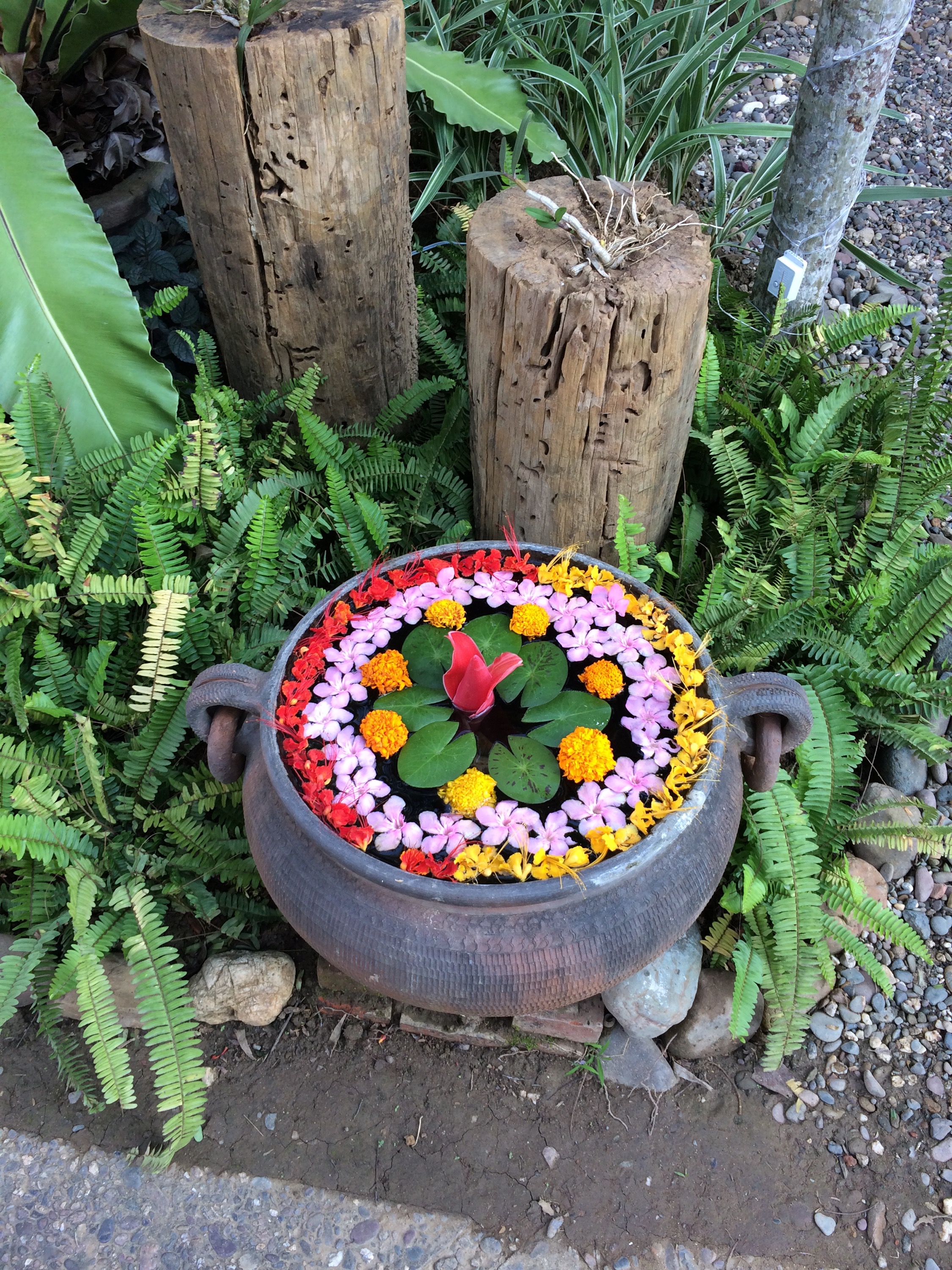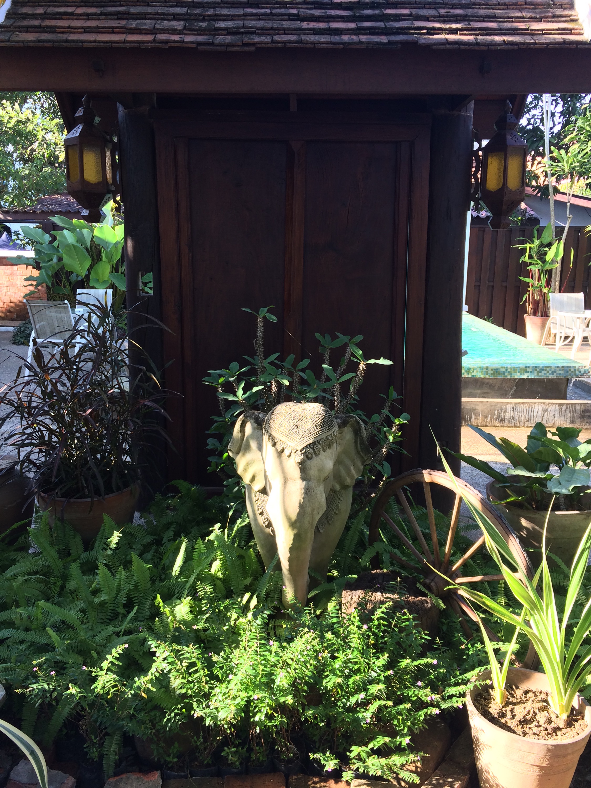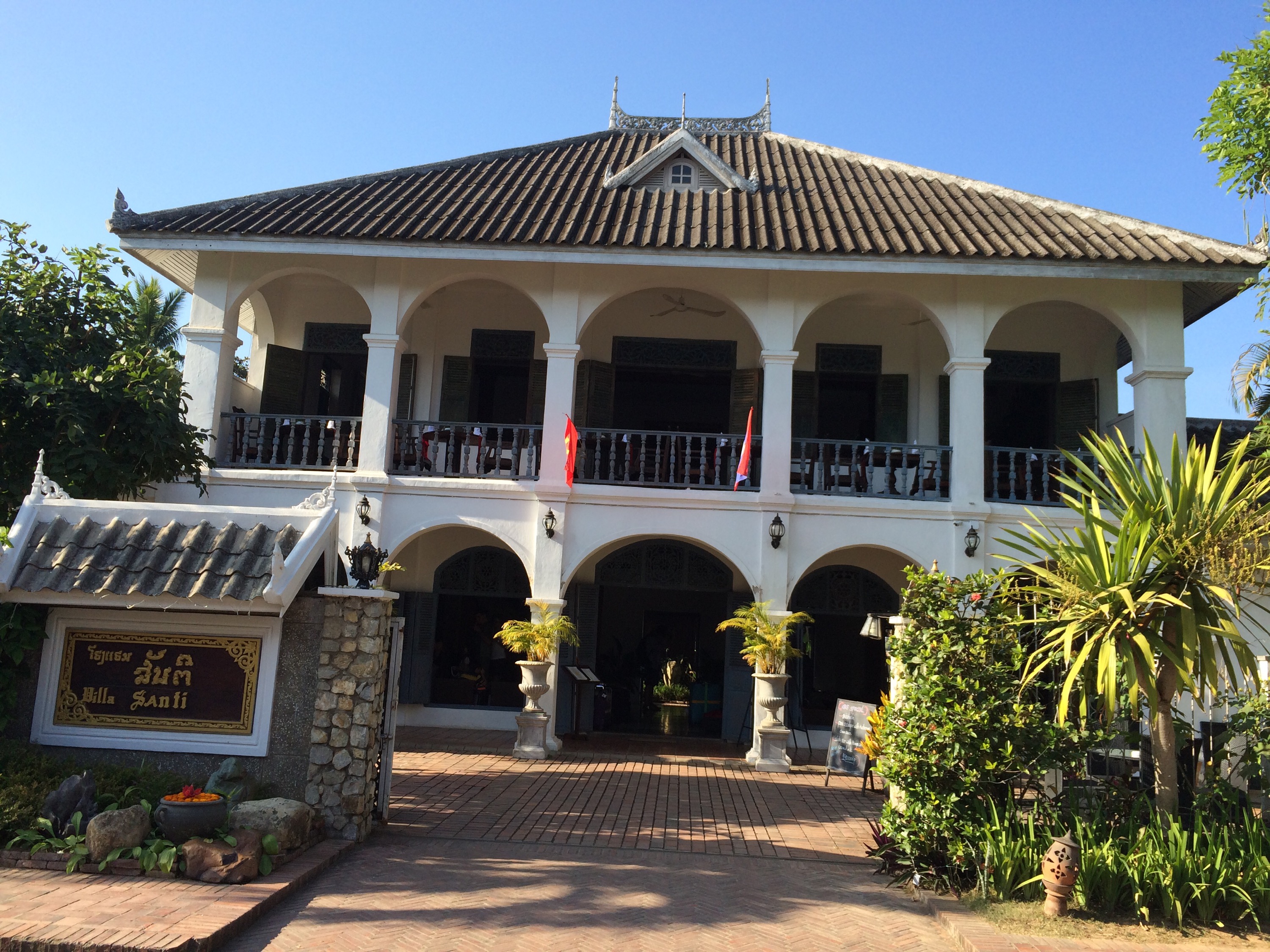 Our abode is the Villa Santi a former royal residence in the heart of the old historic city and just delightful. From another era of dark wooden floors, high ceilings, rosewood furnishings and silk textiles in traditional Lao-colonial style.