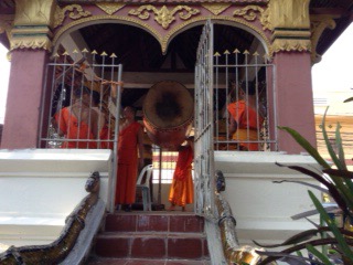 The striking of gongs and the clash of cymbals heralds the evening worship of the monks at the golden temple. It is a sight to behold as they sway in a hypnotic rhythm as they pound the drum. The city reverberates with the echoes.