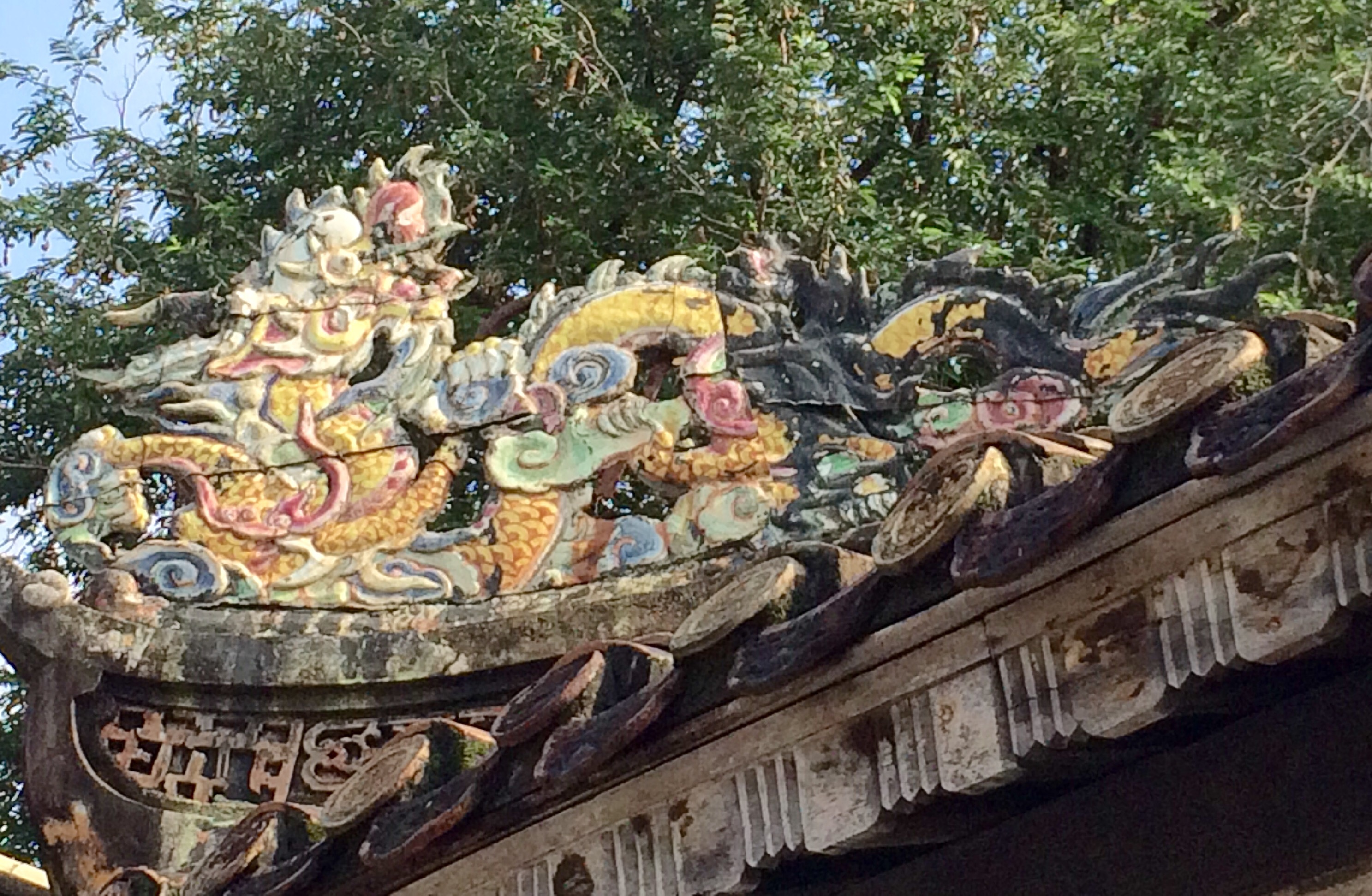 The visit to royal Hue was completed inside the moated Citadel, which formally housed the Royal Palace, including the Forbidden Purple City. It is huge and sits on the major water artery in Hue, the Perfume River. Unfortunately much of the complex was severely damaged during the Vietnam war and one can see bomb damage and bullet holes in many of the walls. It is being painstakingly restored under Unesco.