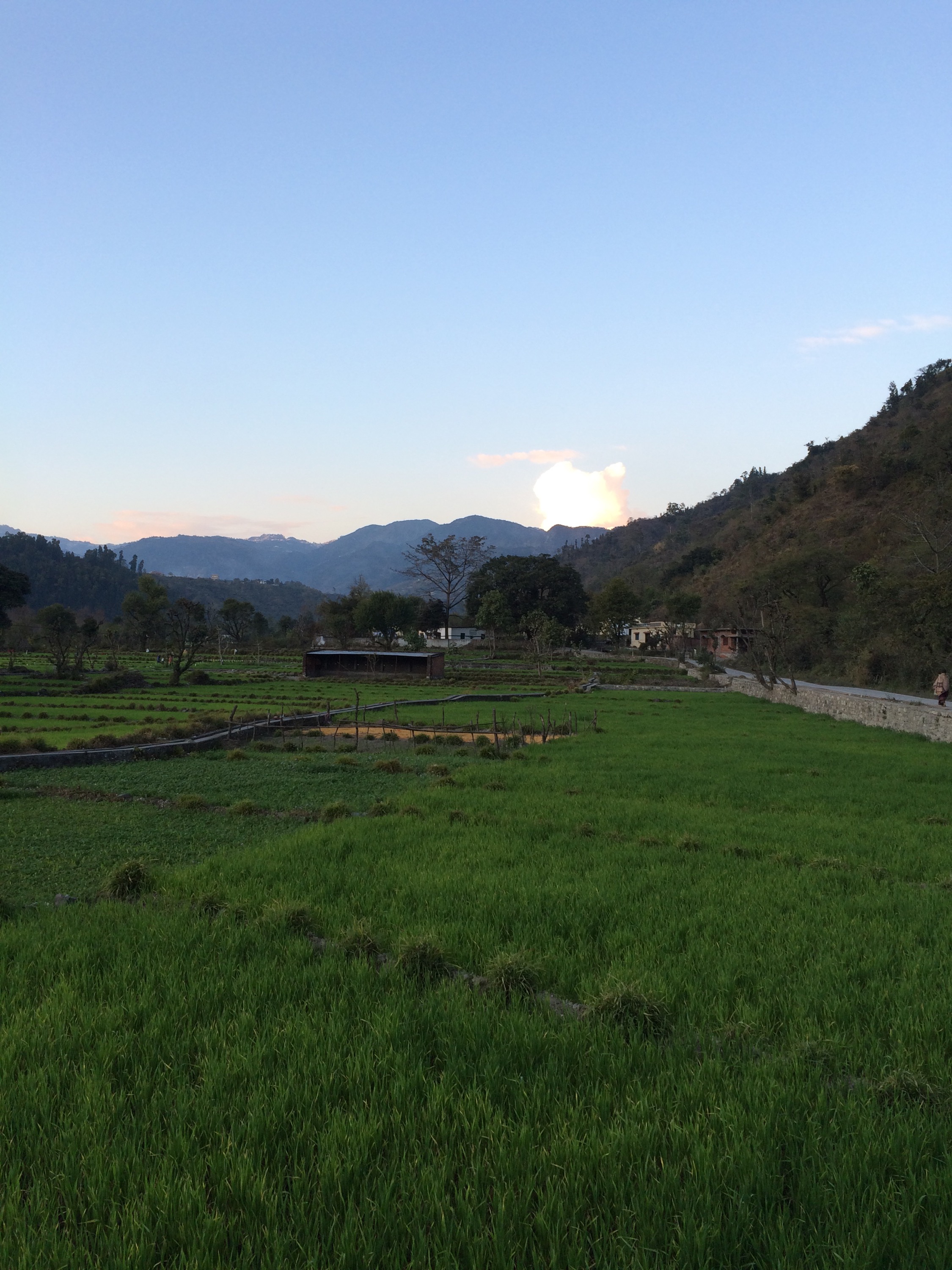 We arrive in Dehradun delayed, famished and exhausted as fog in the North has created delays and backups all over the country. Additionally Republic Day Airforce rehearsals do not help our cause of a speedy arrival. Revival is instant as we drink in the beauty of verdant wheat fields, old villages, clear fast running streams and the Garhwal range of the Himalayan foothills.
