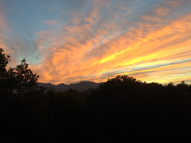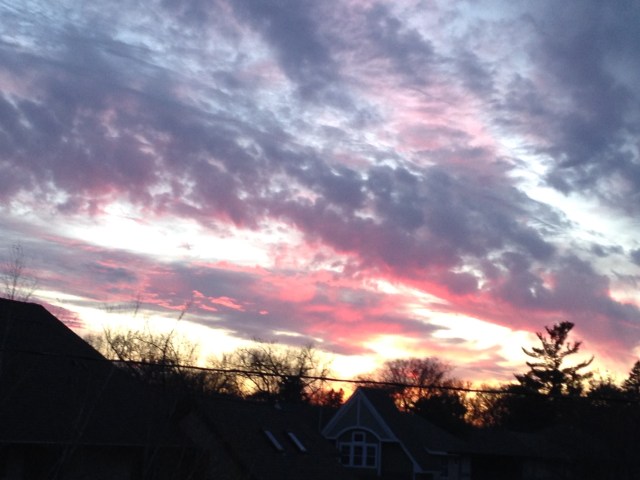 I live in the land of luminescence. Every so often the nightly news will get me excited at the possibility of gazing at the Northern Lights from my own backyard: IF I am willing to abandon my warm bed at 2am and drive away from ambient city lights. Unfortunately when the time comes, resolve gives way to reality and another opportunity is missed. One day I will end up making the trek to the North Pole to see the glowing greens and blues and reds when I can avail myself of that beauty at home! But who needs the lights when I can see this from the French doors of my patio.