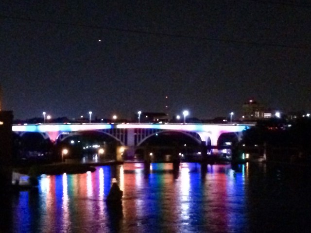 My two photographer friends suggested we drive downtown and photograph the iconic bridges over the Mississippi lit up to reflect the historic week of Supreme Court decisions. So from sunset to 1am we wandered under the bridges and on the sands of the Mississippi.