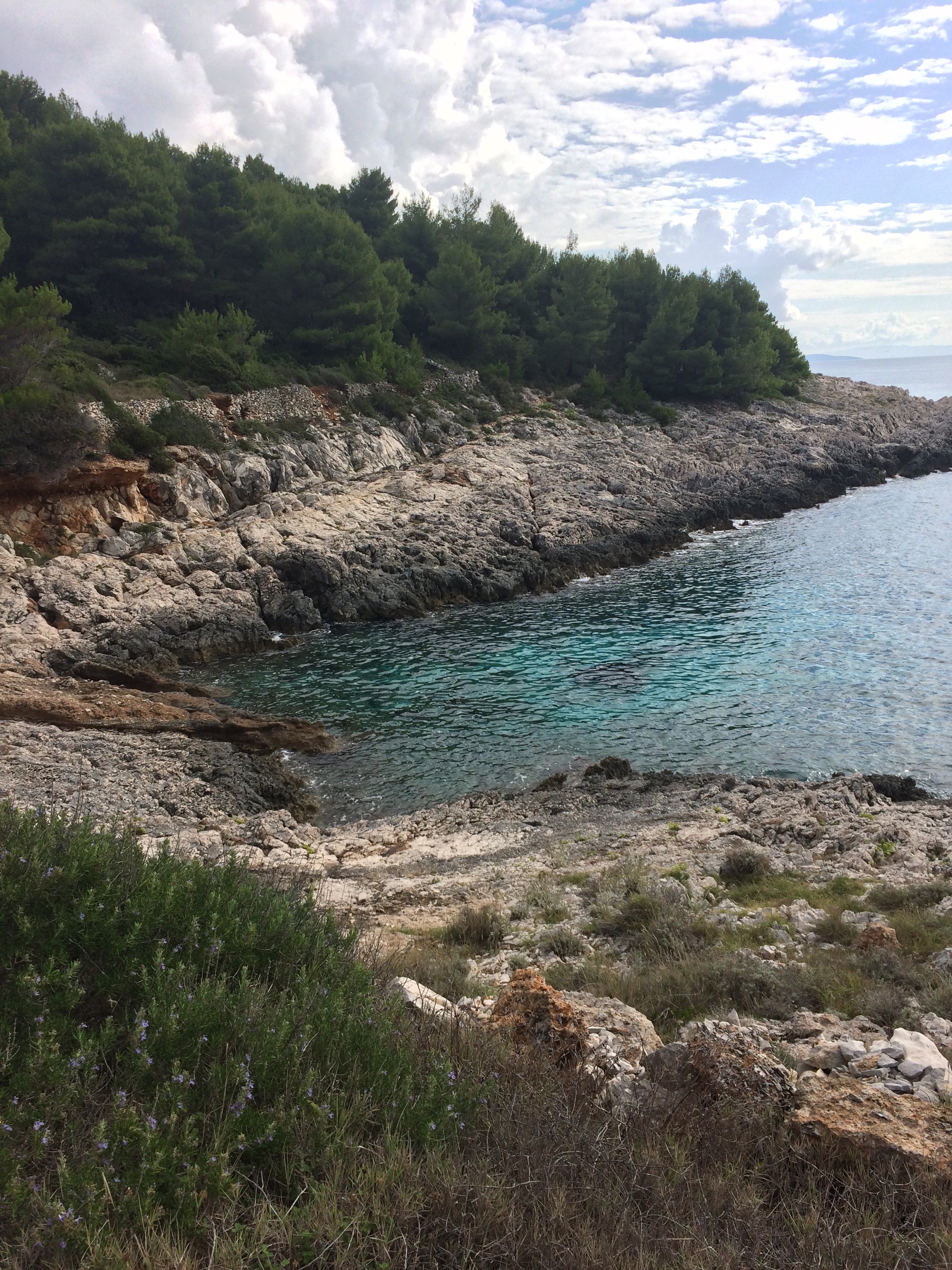 Our hike took us far above the pretty town of Vela Luka and past Vela Spila or Big Cave. Prehistoric remains of two adults make it an important marker of human activity from Neolithic times. We walked through vineyards and groves of ripening olive trees and were treated to the clear greens and blues of the Adriatic.