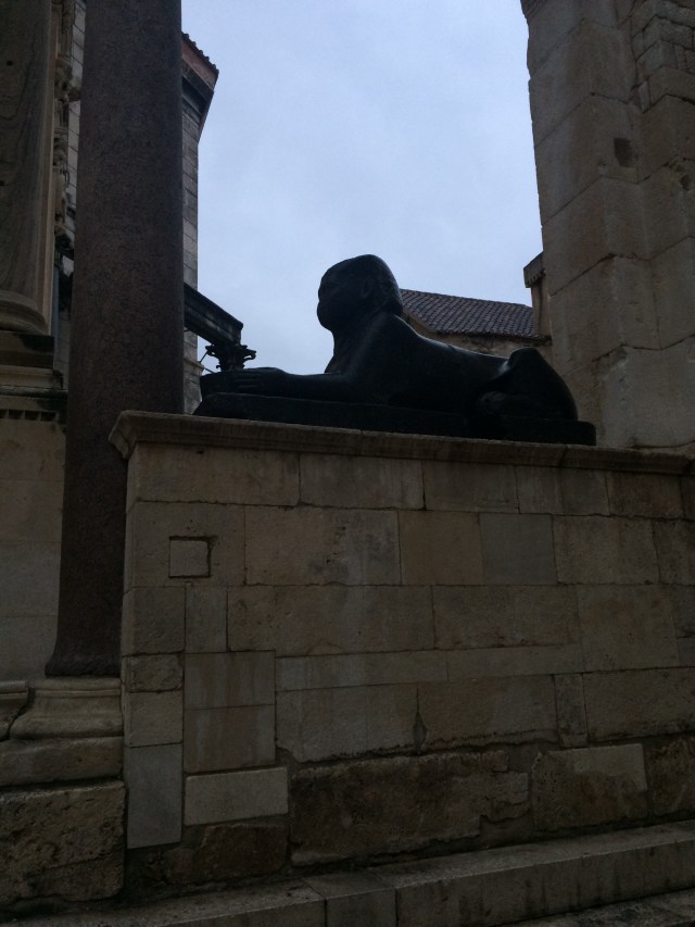 As my visit to the Dalmatian Coast winds down it is fitting that some of my last memories will be of the walled cities of Splits and Trogir. We arrived in Splits mid-afternoon after sailing away from the enchanted bay of Pucisca. Our sailboat awaited us outside our medieval palace lodgings and we raced ahead of the storm that pummeled Splits for the next two days.