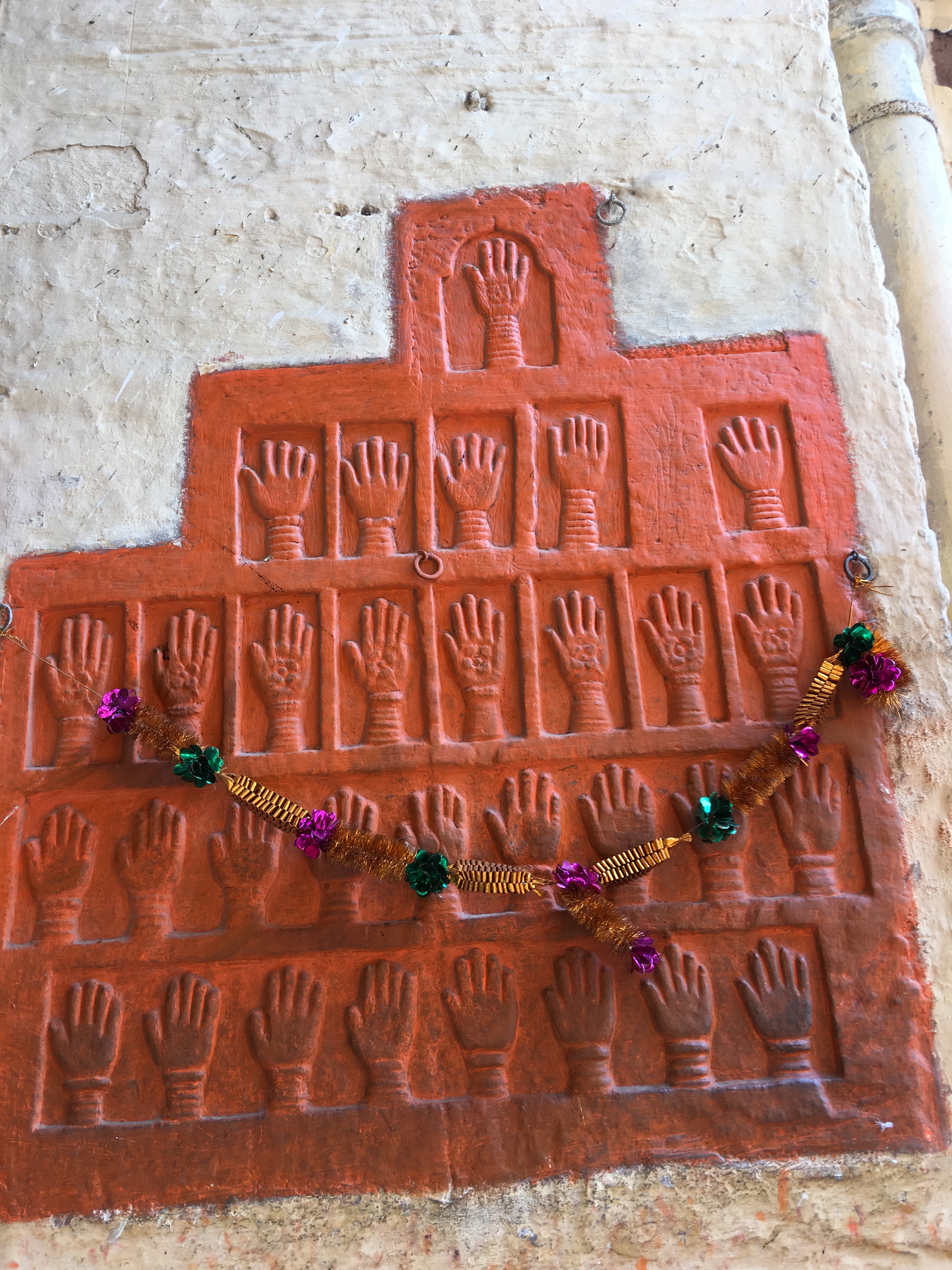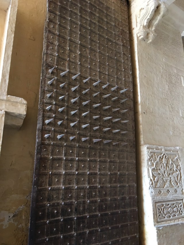 Centuries later, reminders of a grim past live on in the hand prints of Maharanis on their way to immolate themselves on the funeral pyres of the Maharajas and iron gates studded midway with nails to pierce the tough hides of invading elephants in frequent territorial wars.