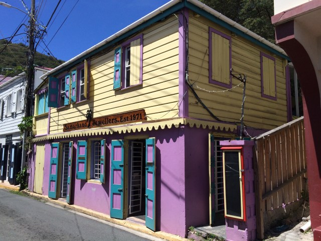 A ‘must’ visit is to the tiny museum situated in the 1780’s Lower Estate Sugar Works in Road Town. It is easily found and close to the main ferry terminal. A leisurely half hour with personalized commentary from a proud Tortolan offers a glimpse into life now and past. After that a walk along the Old Main Street is a feast for the eyes as brightly painted structures in chartreuse, orange, purple, green and pink dazzle the eyes.