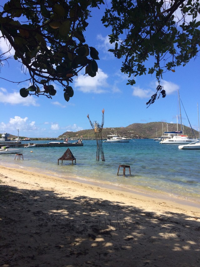An unexpected delight is discovering Aragorn’s Studio in Trellis Bay Village on Beef Island. Metal sculptures, pottery, art and beautifully carved colorful fish offer a cornucopia of temptations. The Fireball Full Moon Party happens once a month on the beach and though my timing did not coincide with a full moon, I was told its quite the event and not to be missed.